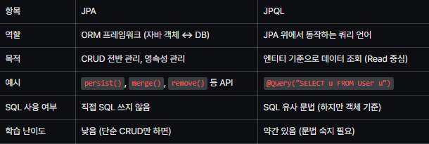 SELECT u FROM User u; // 전체 유저 객체 조회