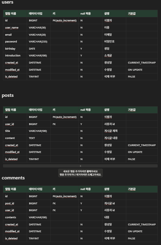 간단하게 가시성이 좋은 ERD를 설계하였으니 내부적으로 남이 봤을 때 이해가 가능할 정도로 설명이 필요하다고 생각한다.
