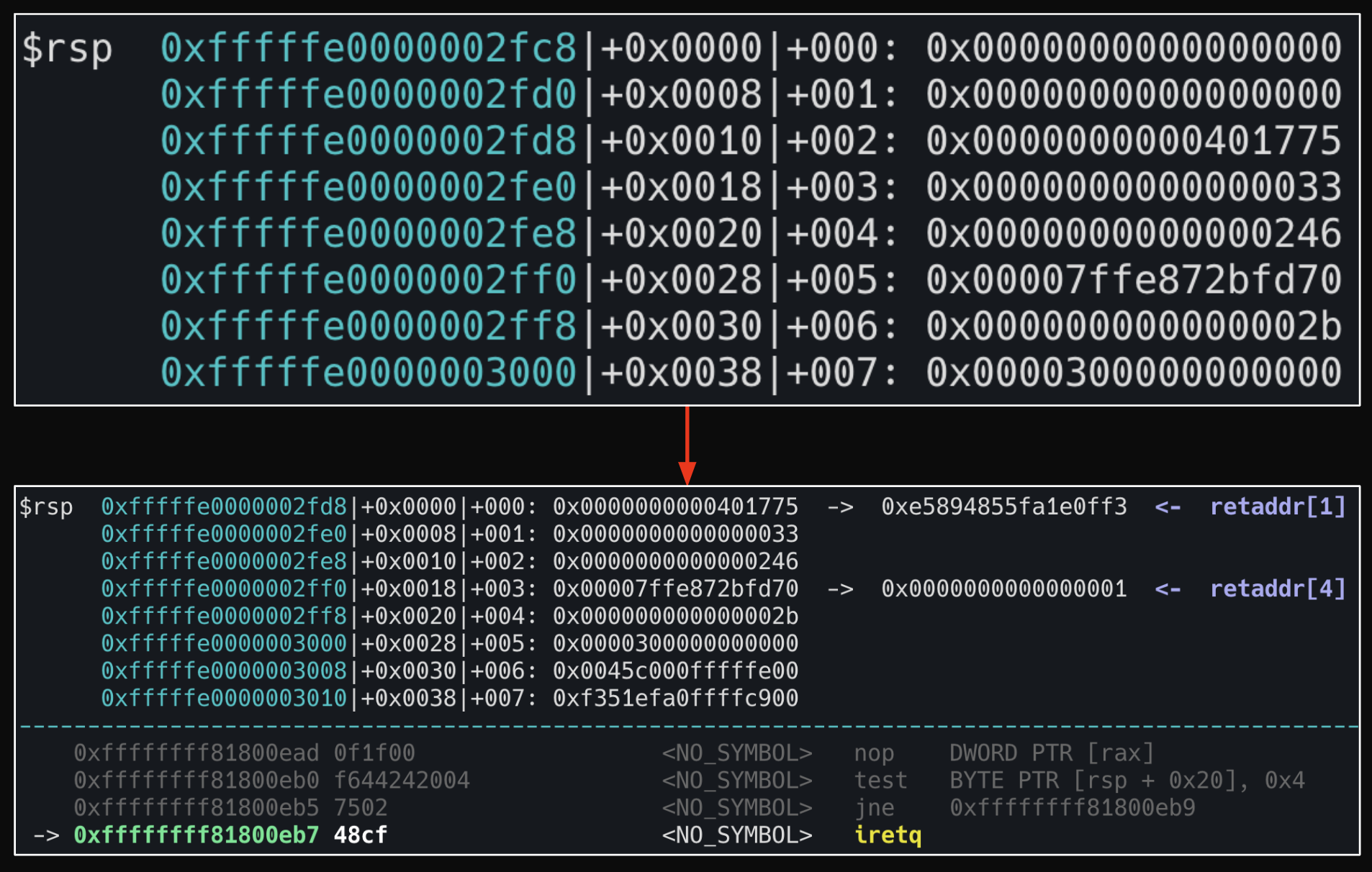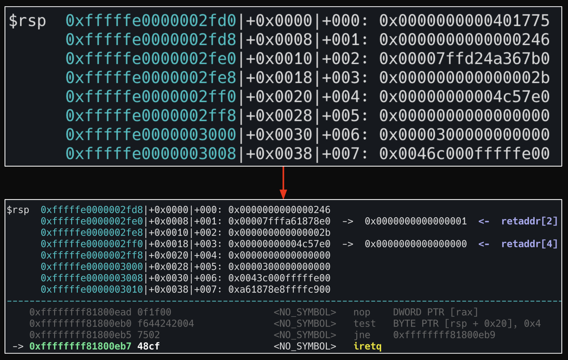 #define iretq 0xffffffff810202af;