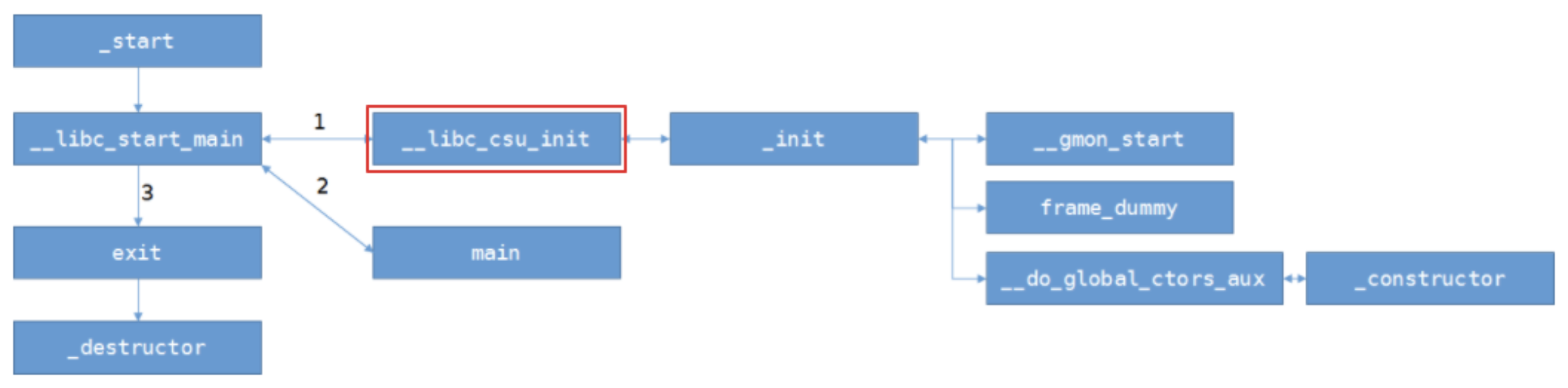 start → libc_start_main → libc_csu_init → … → main