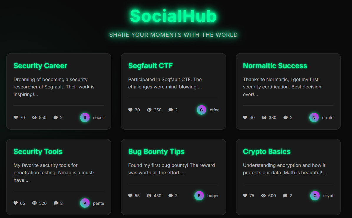 "content": "Started learning about cybersecurity and CTF challenges. The world of hacking is fascinating!",