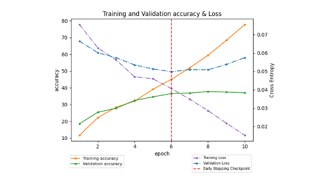 ax2.axvline(valid_min_loss, linestyle='--', color='r', label="Early Stopping Checkpoint")