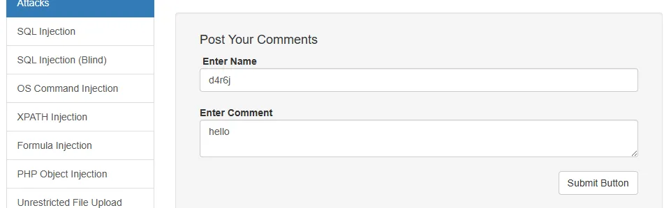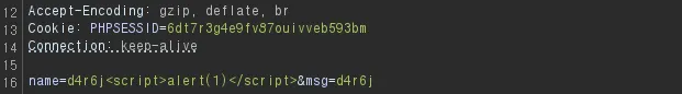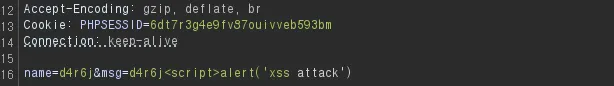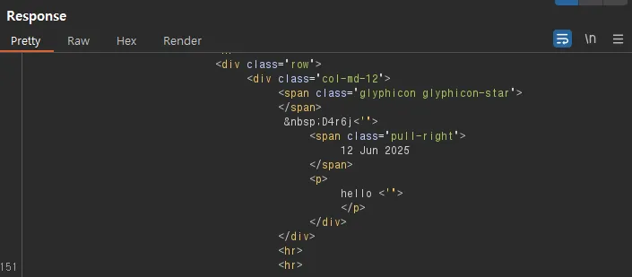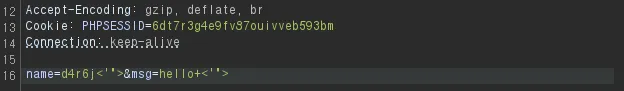 d4r6j 이라는 데이터를 먼저 썼으면, 화면에 찍히는 것도 Burp-Suite 에서 봐야함.d4r6j 가 찍혀 오는 지를 돌아다니면서 찾아보고 있으면 거기서 크사를 확인 가능.STEP 1: 어떤 데이터를 서버에 저장하면