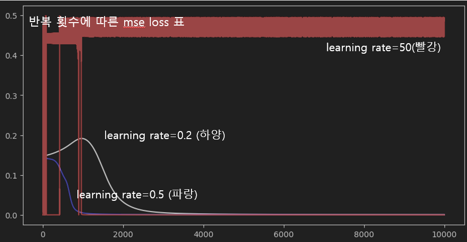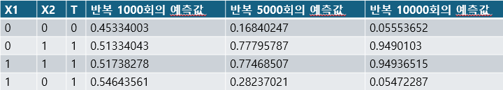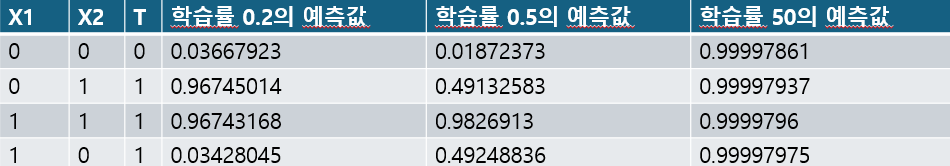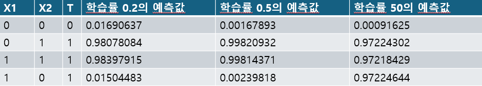 은닉층 유닛 2개, 학습률 0.1 고정.