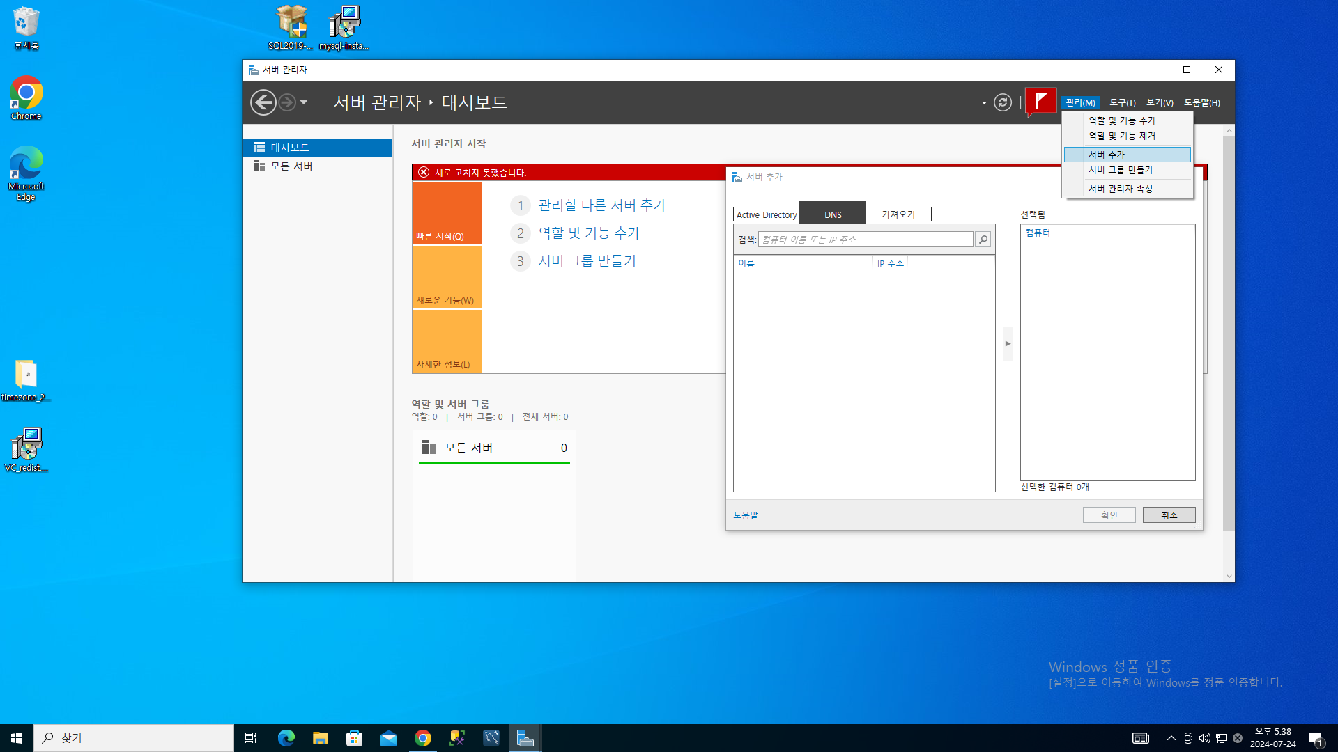 원격 데스크톱 서버에서 서버관리자에 접속해 변경해 주어야 할 게 있었는데, 아무리 찾아도 없단다. 아예 없대.