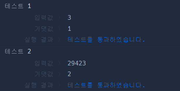 머쓱이는 친구들과 369게임을 하고 있습니다. 369게임은 1부터 숫자를 하나씩 대며 3, 6, 9가 들어가는 숫자는 숫자 대신 3, 6, 9의 개수만큼 박수를 치는 게임입니다. 머쓱이가 말해야하는 숫자 order가 매개변수로 주어질 때, 머쓱이가 쳐야할 박수 횟수를 return 하도록 solution 함수를 완성해보세요.