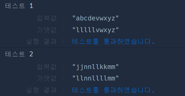 알파벳 소문자로 이루어진 문자열 myString이 주어집니다. 알파벳 순서에서 "l"보다 앞서는 모든 문자를 "l"로 바꾼 문자열을 return 하는 solution 함수를 완성해 주세요.