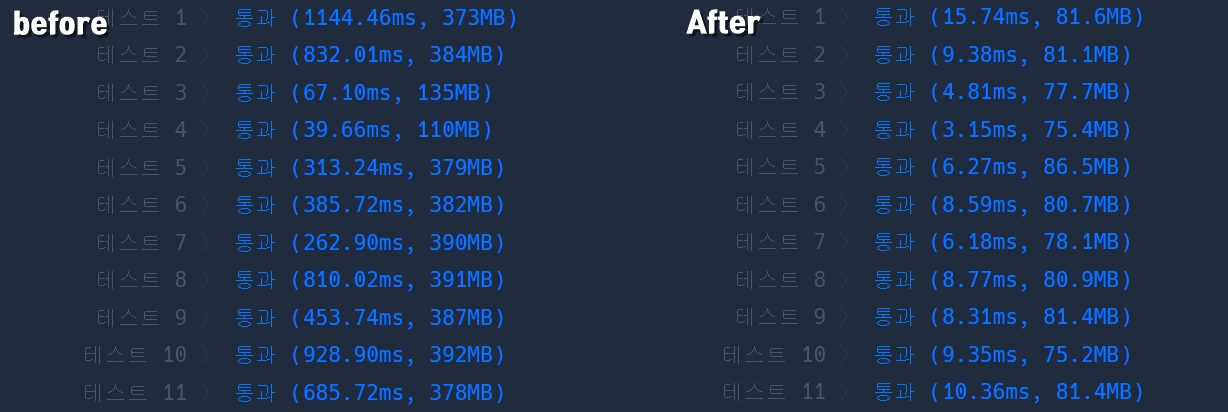 이렇게 놓고 비교해 보니 정말 어마어마한 거다. 특히 첫 번째 테스트 케이스 무슨 일이 일어나고 있나요...? 아주 간단한 코딩 테스트 문제에서 소중한 걸 배우게 되었다.