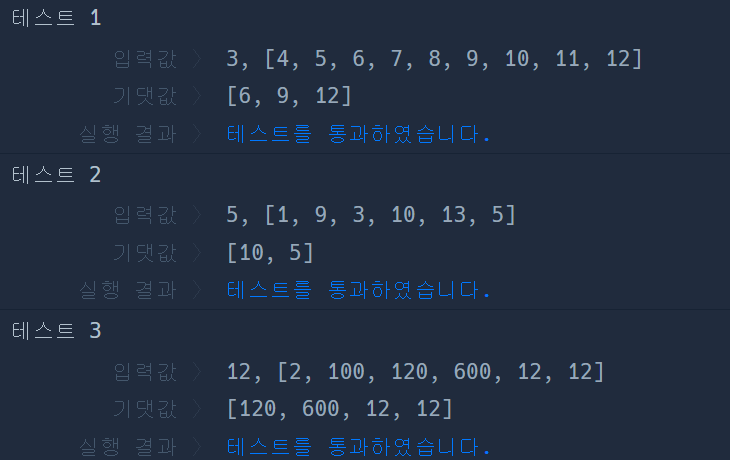 정수 n과 정수 배열 numlist가 매개변수로 주어질 때, numlist에서 n의 배수가 아닌 수들을 제거한 배열을 return하도록 solution 함수를 완성해주세요.