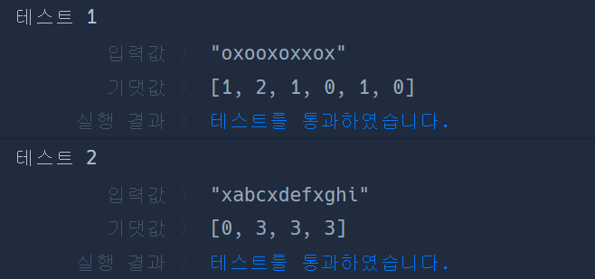문자열 myString이 주어집니다. myString을 문자 "x"를 기준으로 나눴을 때 나눠진 문자열 각각의 길이를 순서대로 저장한 배열을 return 하는 solution 함수를 완성해 주세요.