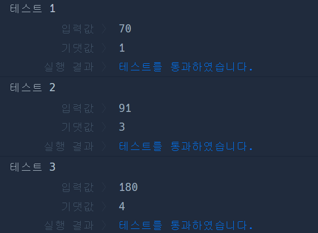 각에서 0도 초과 90도 미만은 예각, 90도는 직각, 90도 초과 180도 미만은 둔각 180도는 평각으로 분류합니다. 각 angle이 매개변수로 주어질 때 예각일 때 1, 직각일 때 2, 둔각일 때 3, 평각일 때 4를 return하도록 solution 함수를 완성해주세요.
