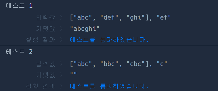 문자열 리스트 str_list와 제외하려는 문자열 ex가 주어질 때, str_list에서 ex를 포함한 문자열을 제외하고 만든 꼬리 문자열을 return하도록 solution 함수를 완성해주세요.