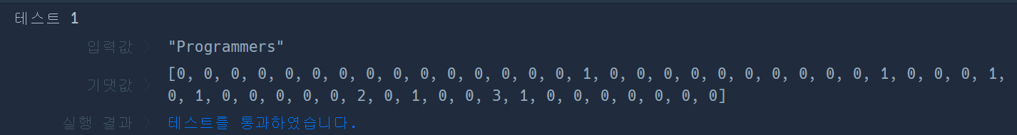 초기화한 정수형 배열 int[] answer에는 모든 값들이 0으로 들어가 있을 테니, my_string에 포함된 문자에 해당하는 방에만 값을 + 해주면 된다(증감식 활용)는 생각이 들었고