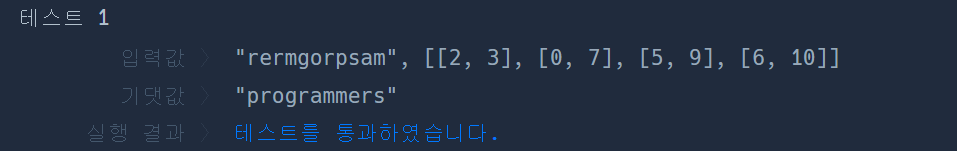 문자열 my_string과 이차원 정수 배열 queries가 매개변수로 주어집니다. queries의 원소는 [s, e] 형태로, my_string의 인덱스 s부터 인덱스 e까지를 뒤집으라는 의미입니다. my_string에 queries의 명령을 순서대로 처리한 후의 문자열을 return 하는 solution 함수를 작성해 주세요.