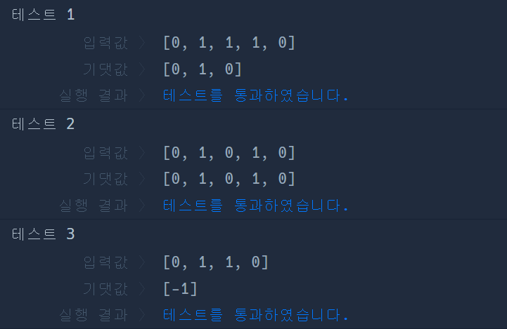 0과 1로만 이루어진 정수 배열 arr가 주어집니다. arr를 이용해 새로운 배열 stk을 만드려고 합니다.