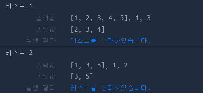정수 배열 numbers와 정수 num1, num2가 매개변수로 주어질 때, numbers의 num1번 째 인덱스부터 num2번째 인덱스까지 자른 정수 배열을 return 하도록 solution 함수를 완성해보세요.