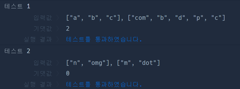 두 배열이 얼마나 유사한지 확인해보려고 합니다. 문자열 배열 s1과 s2가 주어질 때 같은 원소의 개수를 return하도록 solution 함수를 완성해주세요.
