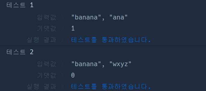 부분 문자열이란 문자열에서 연속된 일부분에 해당하는 문자열을 의미합니다. 예를 들어, 문자열 "ana", "ban", "anana", "banana", "n"는 모두 문자열 "banana"의 부분 문자열이지만, "aaa", "bnana", "wxyz"는 모두 "banana"의 부분 문자열이 아닙니다.