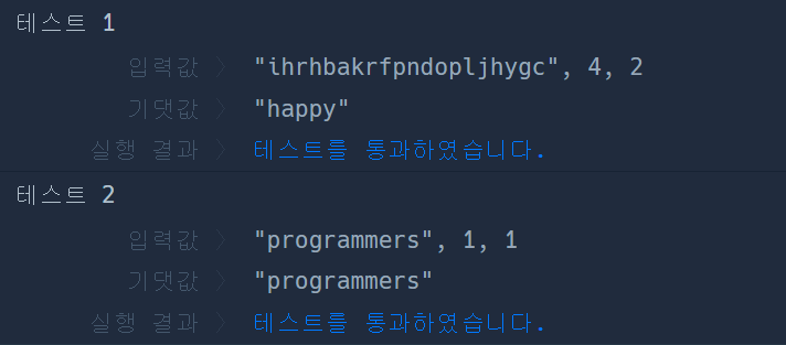 c는 인덱스가 아니라 순서이기 때문에 초기식은 int i=c-1;로 작성했고, my_string 길이 전까지 루프를 돌되 i가 m만큼 증가하면 되는 거였다. 글자수 등을 동일한 개수만큼 묶거나 할 때 증감식을 어떻게 바꿀 것인지를 먼저 생각하는 습관을 들여봐야겠다.