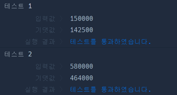구매한 옷의 가격 price가 주어질 때, 지불해야 할 금액을 return 하도록 solution 함수를 완성해보세요.