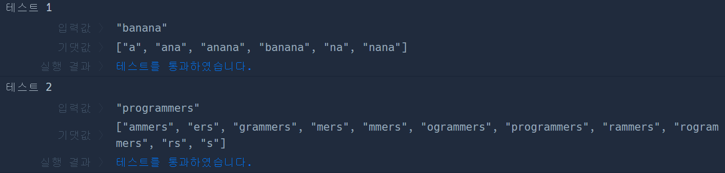 문자열 my_string이 매개변수로 주어질 때, my_string의 모든 접미사를 사전순으로 정렬한 문자열 배열을 return 하는 solution 함수를 작성해 주세요.