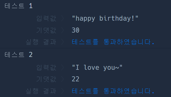 머쓱이는 할머니께 생신 축하 편지를 쓰려고 합니다. 할머니가 보시기 편하도록 글자 한 자 한 자를 가로 2cm 크기로 적으려고 하며, 편지를 가로로만 적을 때, 축하 문구 message를 적기 위해 필요한 편지지의 최소 가로길이를 return 하도록 solution 함수를 완성해주세요.
