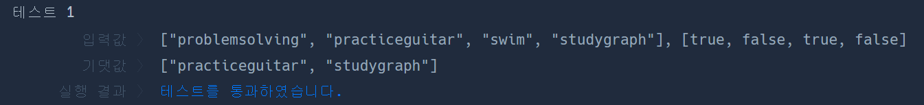 오늘 해야 할 일이 담긴 문자열 배열 todo_list와 각각의 일을 지금 마쳤는지를 나타내는 boolean 배열 finished가 매개변수로 주어질 때, todo_list에서 아직 마치지 못한 일들을 순서대로 담은 문자열 배열을 return 하는 solution 함수를 작성해 주세요.