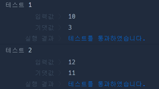 자연수 n이 매개변수로 주어집니다. n을 x로 나눈 나머지가 1이 되도록 하는 가장 작은 자연수 x를 return 하도록 solution 함수를 완성해주세요. 답이 항상 존재함은 증명될 수 있습니다.
