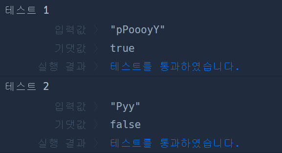 예를 들어 s가 "pPoooyY"면 true를 return하고 "Pyy"라면 false를 return합니다.