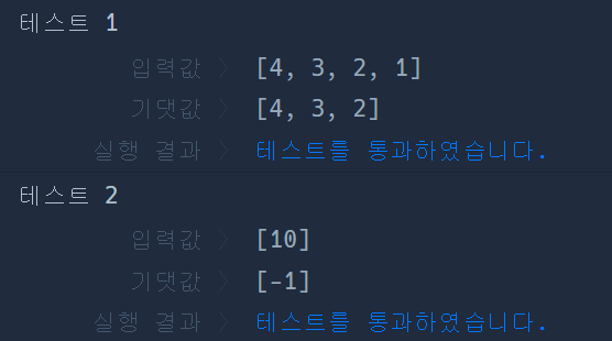 Math.min()을 이용해 최소값을 구한 뒤, 다시 한 번 루프를 돌며 해당 요소가 아닌 경우에만 배열에 값을 넣어주었다.