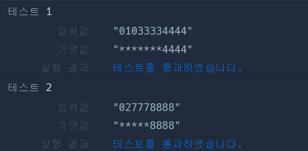 프로그래머스 모바일은 개인정보 보호를 위해 고지서를 보낼 때 고객들의 전화번호의 일부를 가립니다.