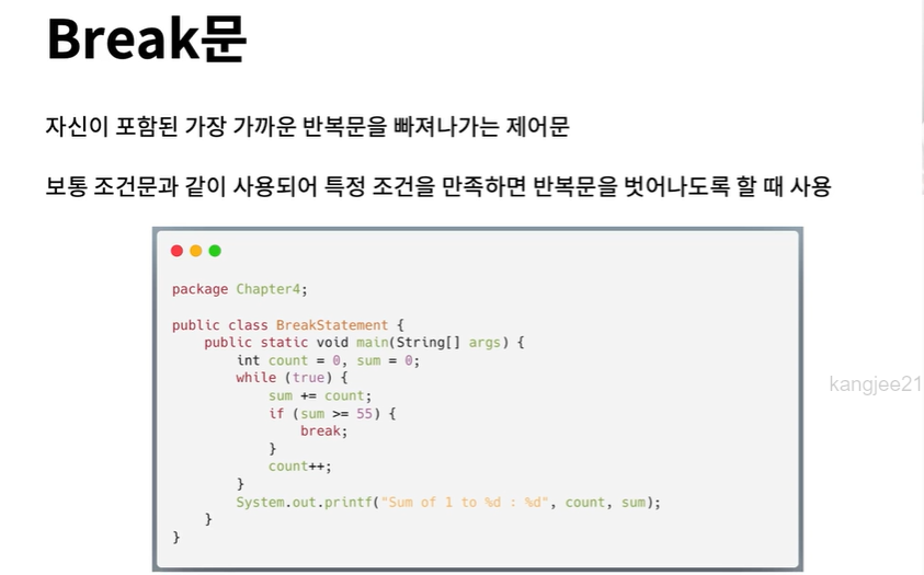 ** 브레이크문은 자신이 포함된 가장 가까운 반복문을 빠져나가는 제어문이다.