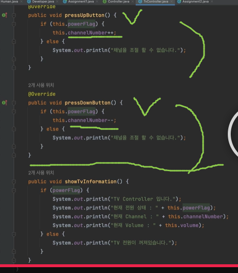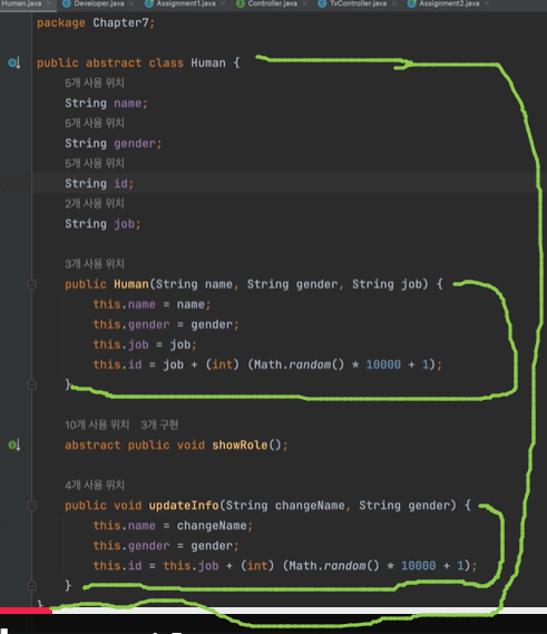 ✔ 추상클래스를 상속받은 클래스에서는 추상메서드를 반드시 구현해야 함.