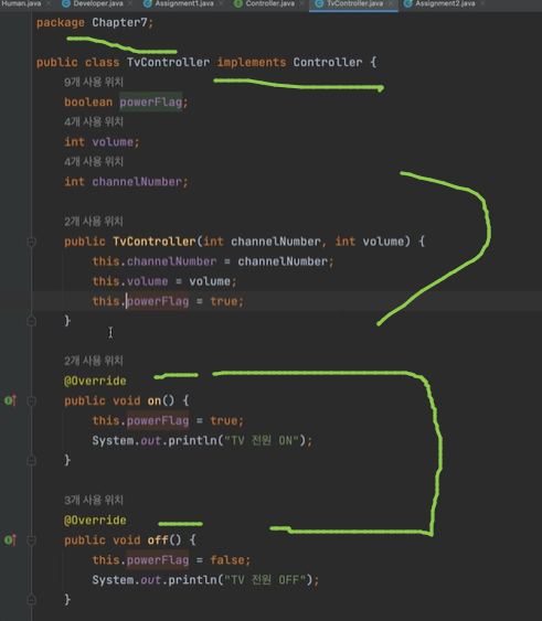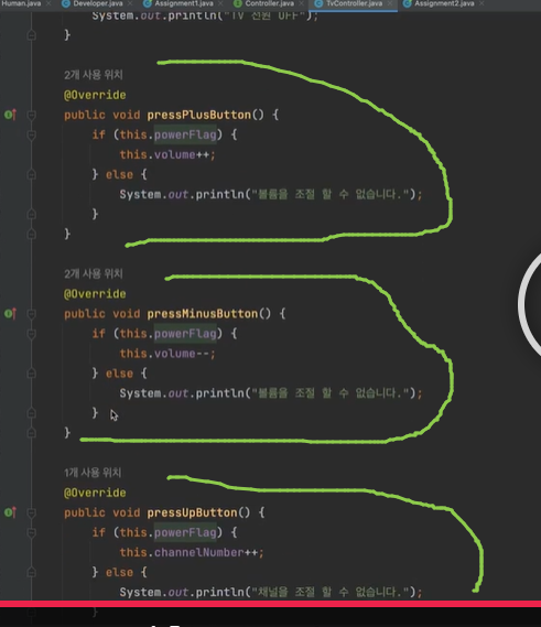 ✔ 인터페이스 혹은 추상 클래스의 미구현 메서드들 구현해야 함