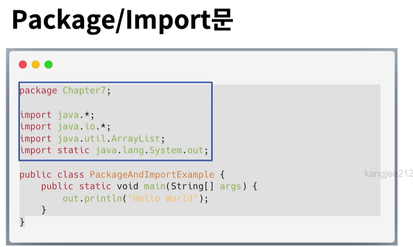 ✔ import문에 package.을 하더라도 하위 패키지의 모든 클래스를