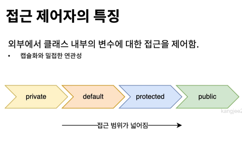 -접근 제어자 = 접근을 제한하는 제어자