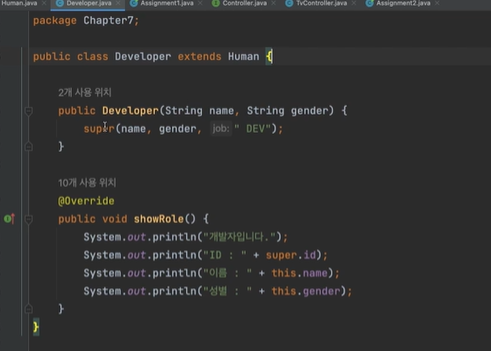 ✔ 사람: 부모 클래스 - 개발자: 자식 클래스