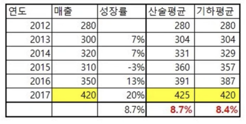 : 특정 기간을 포함한 이전 기간의 모든 매출에 대한 평균 값