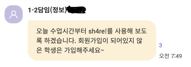 자습 시간에 반을 돌면서 sh4re에 대해 소개를 했습니다.