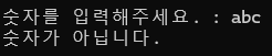숫자 외에 다른게 들어갔을때는 오류가 난다 (사용한 변수가 int형이라서)