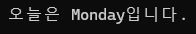 Console.WriteLine($"오늘은 {day}입니다.");