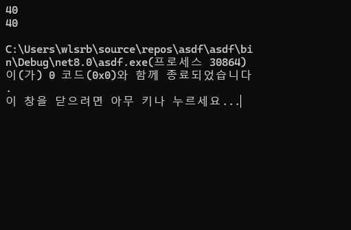 이렇게 넓이와 높이를 설정해주면 콘솔창에 출력이 40 , 40에 한정되게 된다.