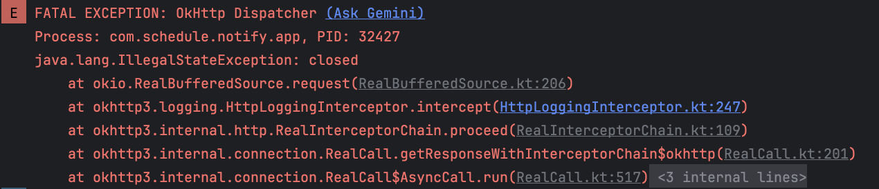 필자는 Ìnterceptor 에서도 response.body에 접근하고 CallAdapter에서도 response.body에 접근하기 때문에 IllegalStateException closed 오류가 발생한 것이다.