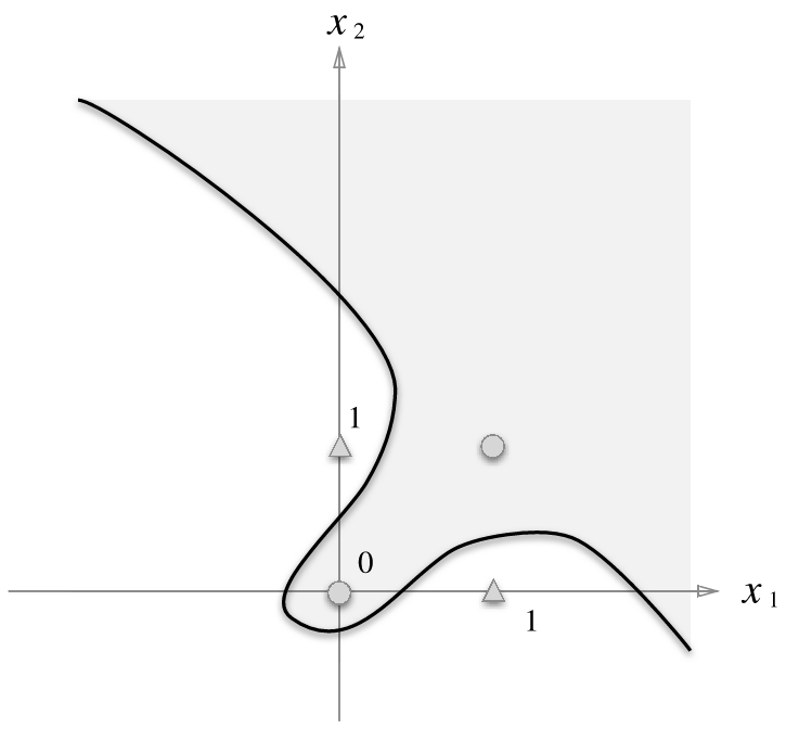 위 그림과 같은 곡선(비선형)으로 영역을 나눌 수 있다.