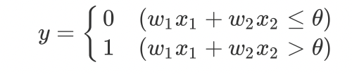 - 뉴런에서 보내온 신호의 총합이 정해진 한계를 넘어설 때만 1을 출력