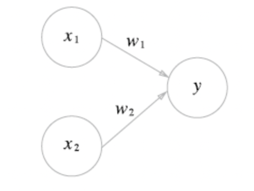 과 는 입력 신호, 는 출력 신호, 과 는 가중치를 의미하고, 그림의 원을 뉴런 혹은 노드라고 부른다.