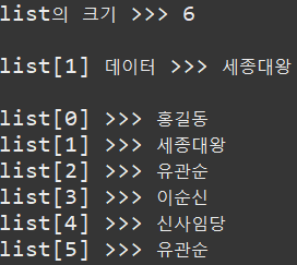 System.out.println("list[1] 데이터 >>> " + list.get(1)); // 세종대왕