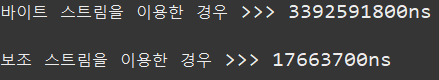 System.out.println("바이트 스트림을 이용한 경우 >>> " + (end-start) + "ns");