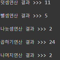 System.out.println("나머지연산 결과 >>> " + (num1 % num2));
